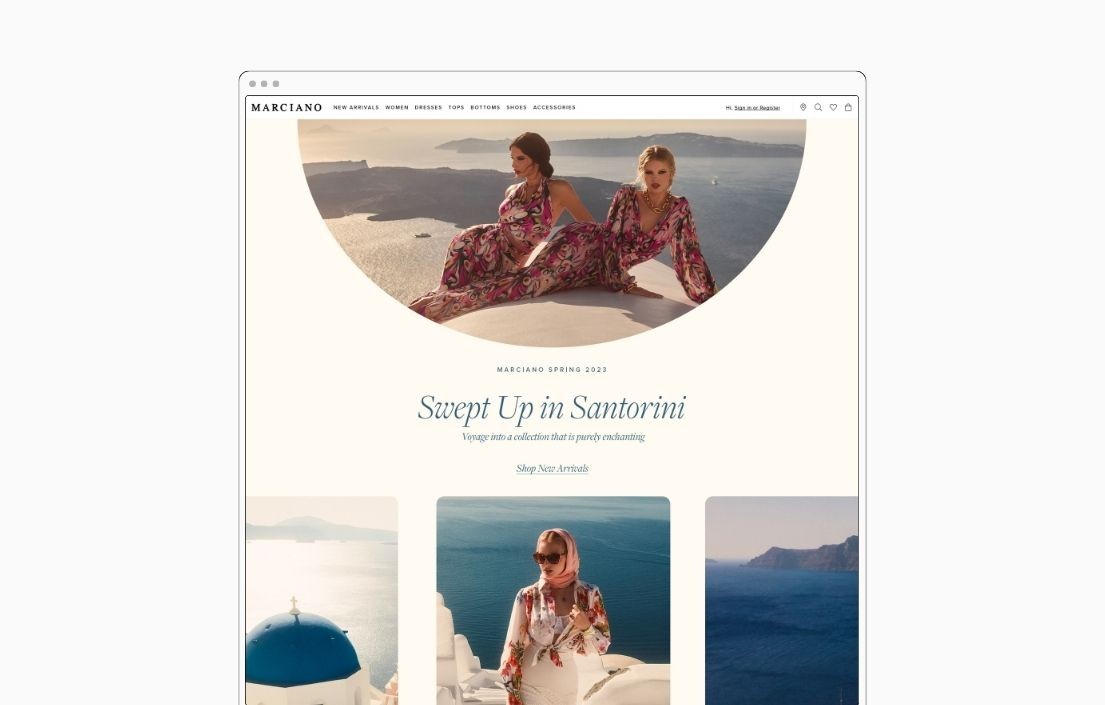 This seasonal lookbook for Marciano was designed to celebrate the spirit of the collection through immersive visuals and elegant editorial pacing. Inspired by the location, Santorini, the lookbook was designed to reflect the scene and highlight each garment.