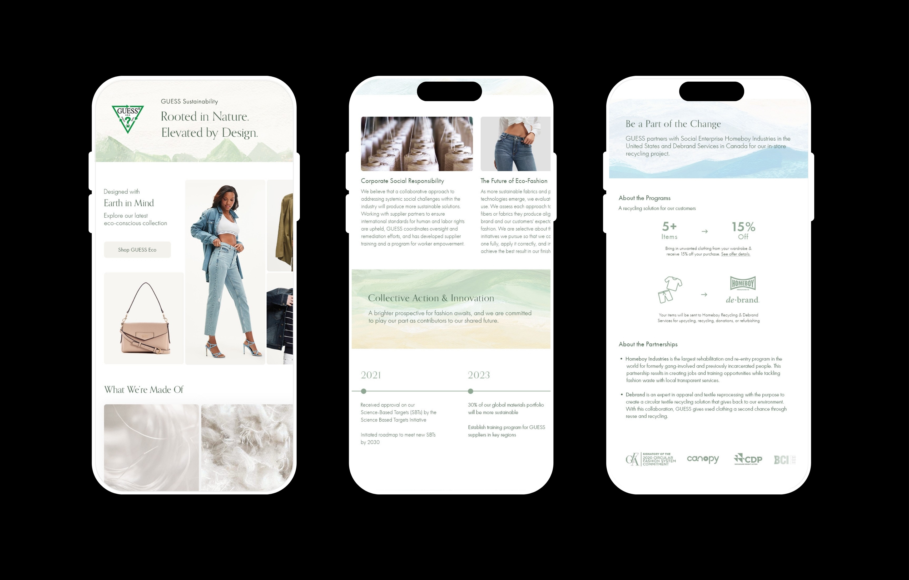 I started by researching GUESS’s sustainability efforts and organizing the content into clear, scrollable sections.